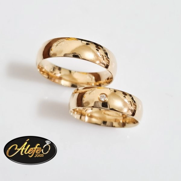 Par de Alianças em Ouro 18k , Modelo Boleada com pedra ,
