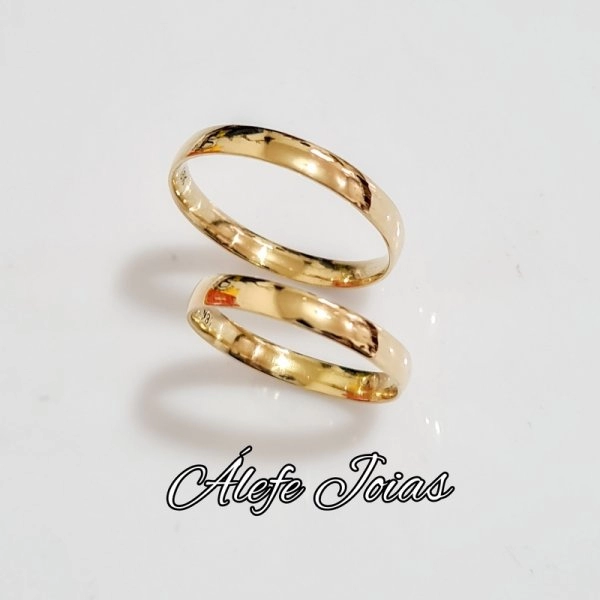 Par de Alianças em Ouro 18k , Modelo Lisa Boleada Anatômica,