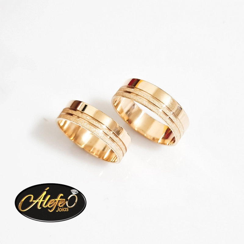 Par de Alianças em Ouro 18k , Modelo Reta Trabalhada ,
