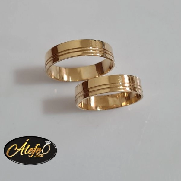 Par de Alianças em Ouro 18k , Modelo Reta Trabalhada