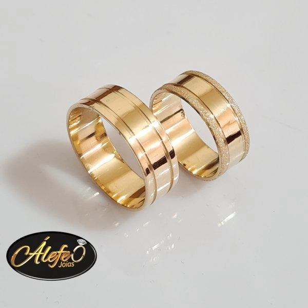 Par de Alianças em Ouro 18k , Modelo Reta Trabalhada