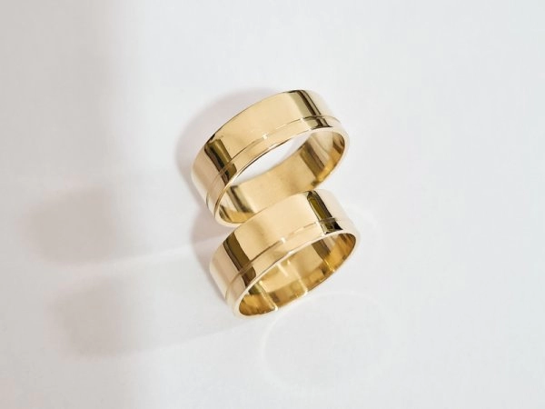 Par de Alianças em Ouro 18k , Modelo Reta Trabalhada ,