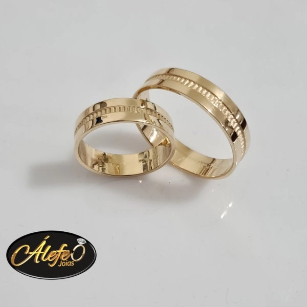 Par de Alianças em Ouro 18k , Modelo Reta Trabalhada ,