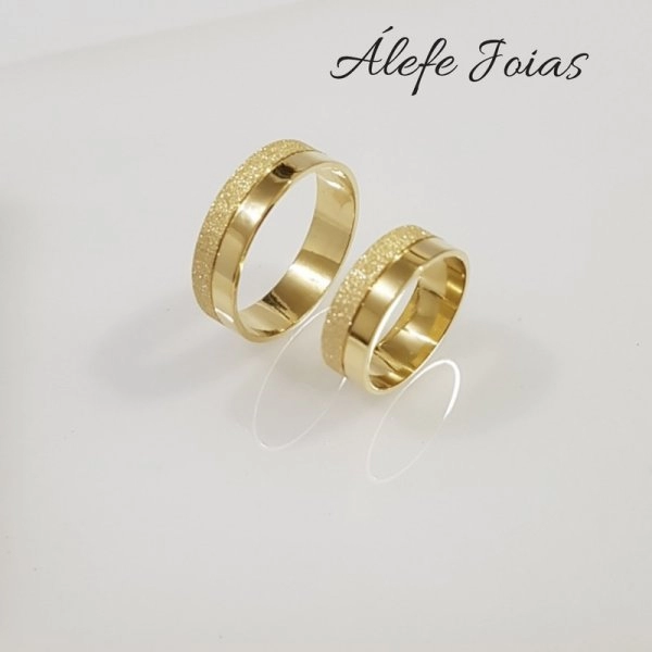 Par de Alianças em Ouro 18k , Modelo Reta Trabalhada ,