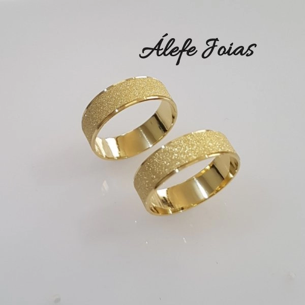 Par de Alianças em Ouro 18k , Modelo Reta Trabalhada ,