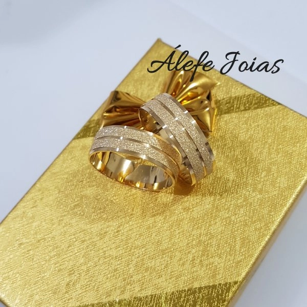 Par de Alianças em Ouro 18k , Modelo Reta Trabalhada ,