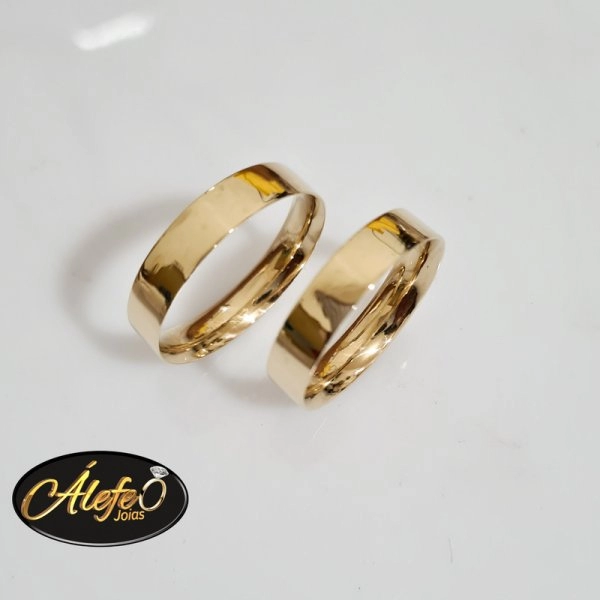 Par de Alianças em Ouro 18k , Modelo Reta Lisa Anatômica ,