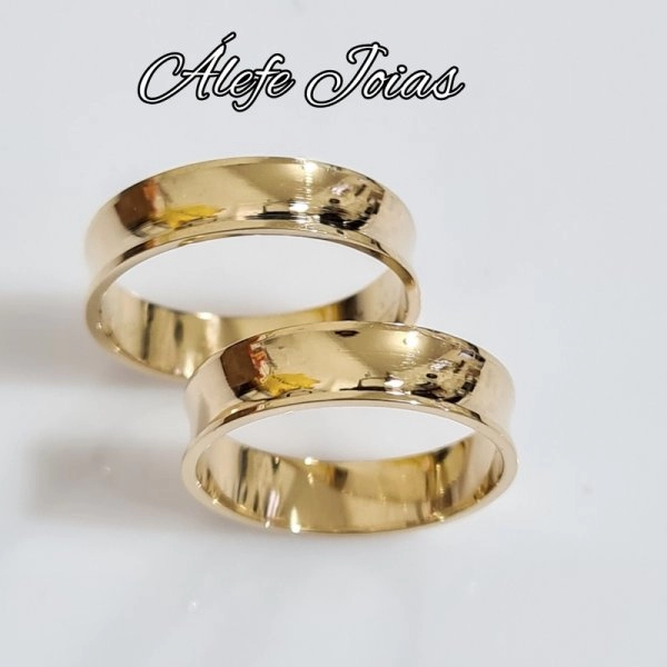Par de Alianças em Ouro 18k , Modelo Reta Côncova