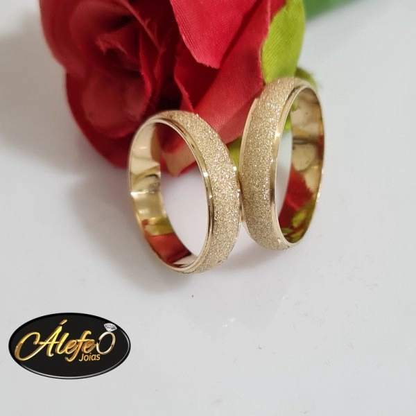 Par de Alianças em Ouro 18k , Modelo Boleada Trabalhada ,