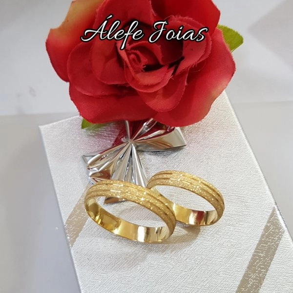Par de Alianças em Ouro 18k , Modelo Boleada Trabalhada ,