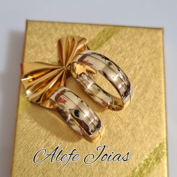 Par de Alianças em Ouro 18k , Modelo Boleada Trabalhada Anatômica ,