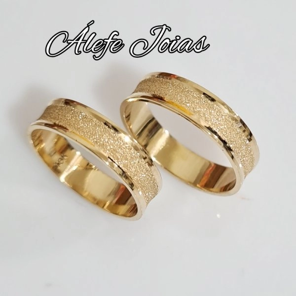 Par de Alianças em Ouro 18k , Modelo Reta Côncova Trabalhada ,