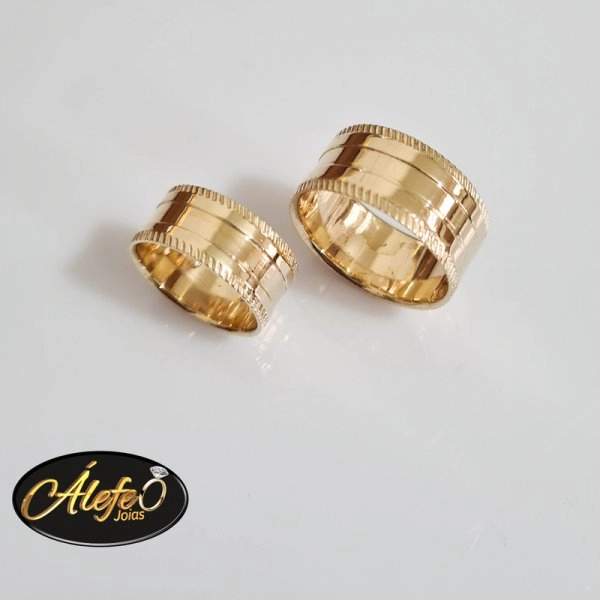 Par de Alianças em Ouro 18k , Modelo Reta Trabalhada ,