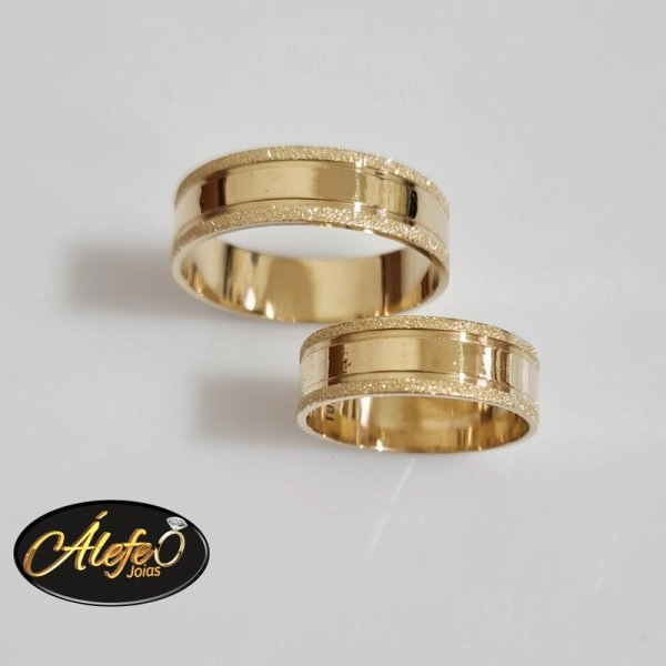 Par de Alianças em Ouro 18k , Modelo Reta Trabalhada ,