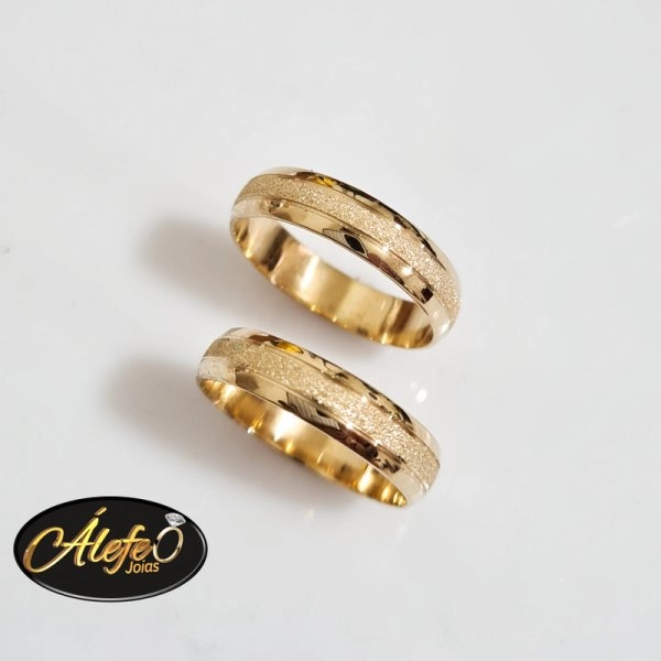Par de Alianças em Ouro 18k , Modelo Boleada Trabalhada ,